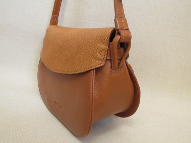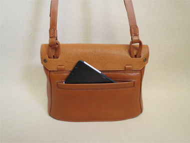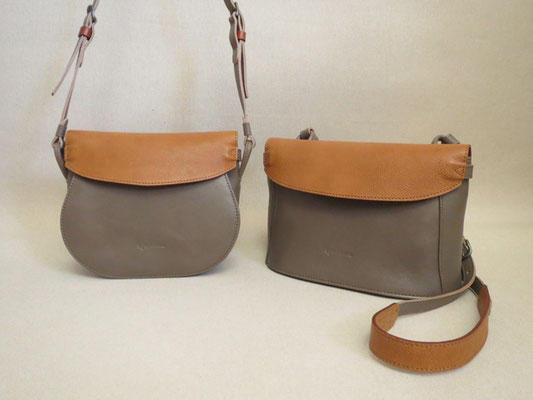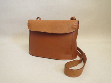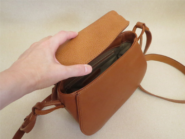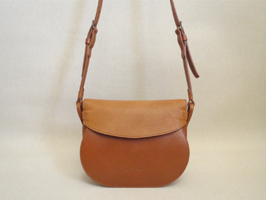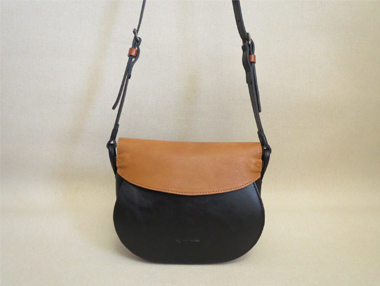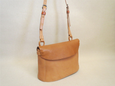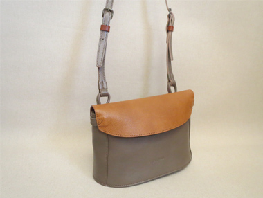 かぶせ部と本体に種類の異なる革を使用し、色と素材のコンビ感のあるショルダーバッグです。